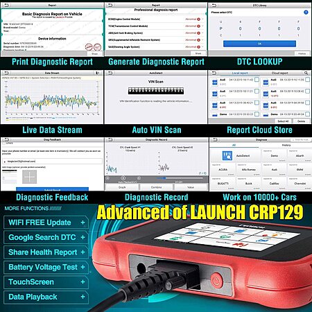 Practical Technology:Fixed more bugs and Upgrade new makes up to 2022 models, including cars, SUVs, minivans, 12v light-duty trucks. Check and Reset Engine/Transmission /ABS/SRS DTC codes. Five Reset Functions: Oil Reset; Steering Angle Calibration; Electronic Parking Brake Reset; TPMS Reset; Throttle Position Reset. Auto VIN Scan, OBD2 10 Modes Test. Add the storage of crp129e from 8G to 16G, and the running memory up to 1.1Ghz, makes the scanner work more faster. Read and display live PCM data streams, Real-time vehicle battery monitoring and graphing. Live data can be recorded and they can be played back in text format or graph format. Playback supports two graphs (independent) or 4 PID's graphed (combined). Data Stream Record and Playback, Automatic Vehicle Health Diagnostic Report ,Diagnostic Feedback. Extensive Vehicle Coverage Includes 57 Vehicle Makers , One-Click Wi-Fi Lifetime Free Update Online. Fast Android 7.1 Operating System, 720P 5.0-inch Touch Screen Display , 6100mAh built-in Rechargeable Battery. 10 Languages: English, Spanish, French, German, Italian, Russian, Polish, Japanese and Korean. The enhanced launch crp129e OBD2 scanner not only covers both OBDII and OBDI vehicles after 1996, as well as some 2021/2022 cars, trucks, diesels, SUVs, vans, etc. But the year supported may vary on different car makes and models. Please Note: if you encounter incompatibility or defective issues, kindly provide the model, year, VIN of your vehicle info to Kingbolen Tech Team, the issue maybe can be fixed via software or hardware upgrade. |