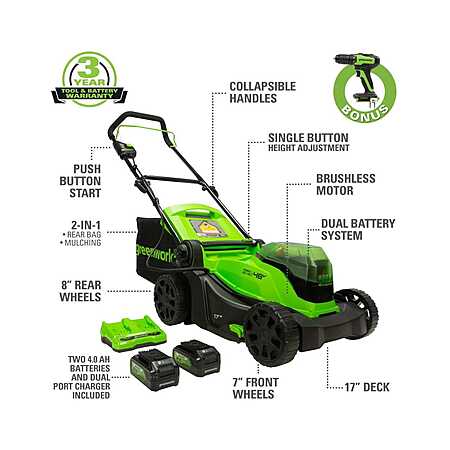 Greenworks 48V 17" Lawn Mower w/ (2) 4.0AH Batteries + Bonus Drill/Driver