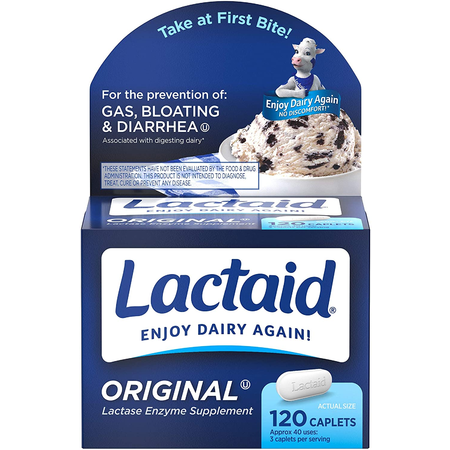 Amazon.com: Lactaid Original Strength Lactose Intolerance Relief Caplets with Natural Lactase Enzyme, 120 ct : Health & Household $10.59