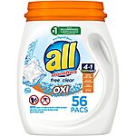 56-Count All Mighty 4-in-1 Laundry Detergent Pacs w/ Oxi (Free Clear)