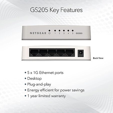 Amazon.com[amazon.com] has Netgear GS205 5-Port Gigabit Ethernet Unmanaged Switch on sale for $11.99. Shipping is free with Prime or orders of $25 or more.