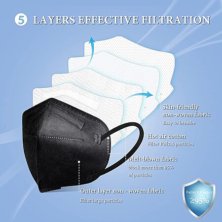 Rasav KN95 Face Mask 30 ct, 5-Layer Disposable Face Masks (Black) for $7.86