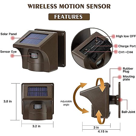 eMACROS Wireless Solar Driveway Alarm 1500 ft Range (1 sensor + 1 receiver) $41.99 w/25% off code plus 15% coupon from amazon detail page