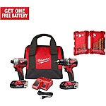 Milwaukee M18 18-Volt Lithium-Ion Brushless Cordless Compact Drill/Impact Combo Kit with 15 piece bit set (hack) $137.50