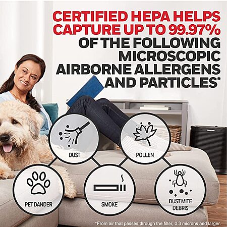 Model: Honeywell AllergenPlus HEPA Air Purifier, Airborne Allergen Reducer for Extra Large Rooms (465 sq ft), White - Wildlfire/Smoke, Pollen, Pet Dander, and Dust Air Purifier, HPA304
