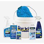 Star brite 3.5 Gallon bucket kit contains the essentials for keeping a boat clean and new looking. Kit includes boat soap, hull cleaner, mildew stain remover, premium cleaner wax, Micro fiber reggae wash mitt, ultimate magic sponge, and 3.5 gallon bucket.