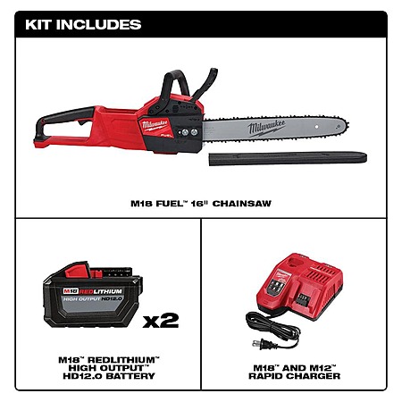 Milwaukee M18 FUEL 16 in. 18-Volt Lithium-Ion Battery Brushless Cordless Chainsaw Kit with Two High Output 12.0Ah Batteries