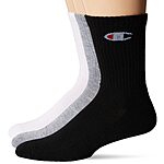 6-Pack Champion Men's Double Dry Moisture Wicking Logo Crew Socks (White/Grey/Black, Size 6-12) on sale for