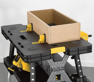 6. Has pocket spaces on surface for temporarily storing screws, tools so they don't roll off