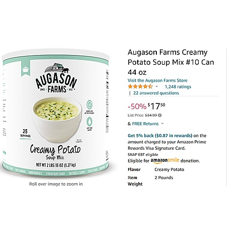 Model: Augason Farms Creamy Potato Soup Mix #10 Can 44 oz