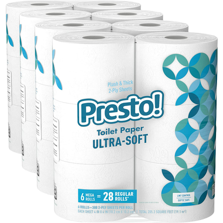 3x Presto! 308-Sheet Mega Roll Toilet Paper, Ultra-Soft, 6 Count (Pack of 4) must buy 3 for promo $53.22