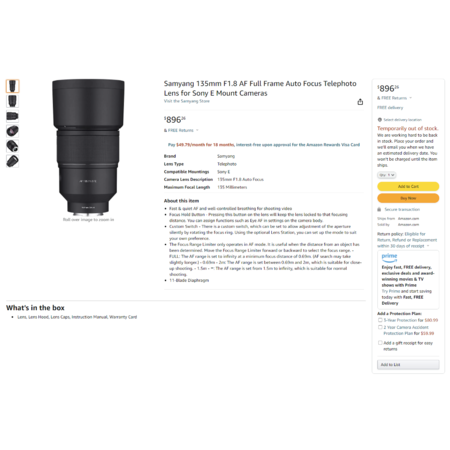 This is a new lens release from Samyang for the Sony E mount. Currently on pre-order in most places for $999.00 so this deal is
