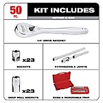 Milwaukee 1/4 in. Drive SAE/Metric Ratchet and Socket Mechanics Tool Set (50-Piece) 48-22-9004 $70 Home Depot