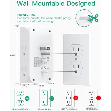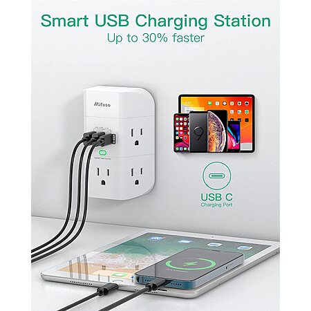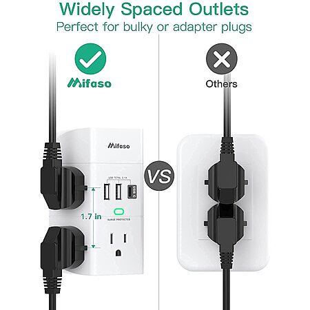 MIFASOPOWER via Amazon has Mifaso 5-Outlet + 3 USB Wall Surge Protector Outlet Extender (white) for $12.89 - $2.32 w/ promo code 72SMKQUJ = $10.57. Shipping is free w/ Prime or on orders $25+.