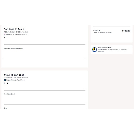 Roundtrip Nonstop Flight: San Jose CA to/from Maui Hawaii