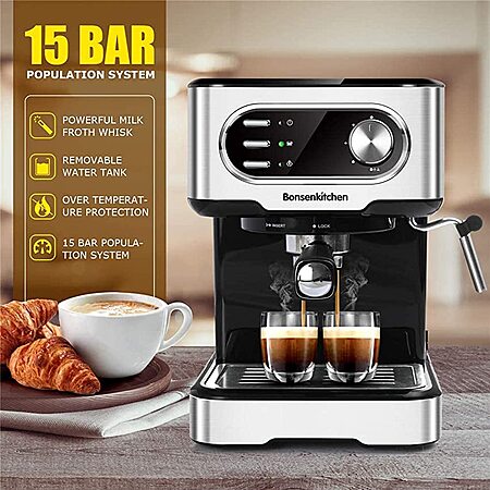 Bonsenkitchen Espresso Machine 20 Bar Expresso Coffee Maker with Milk Frother Wand, Amazon, $89.99