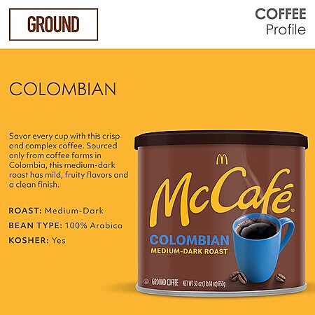 Amazon has 6-Pack 30oz. McCafe Medium Dark Roast Ground Coffee (Colombian) on sale for $21.09. Shipping is free with Prime or if you spend $25 or more.