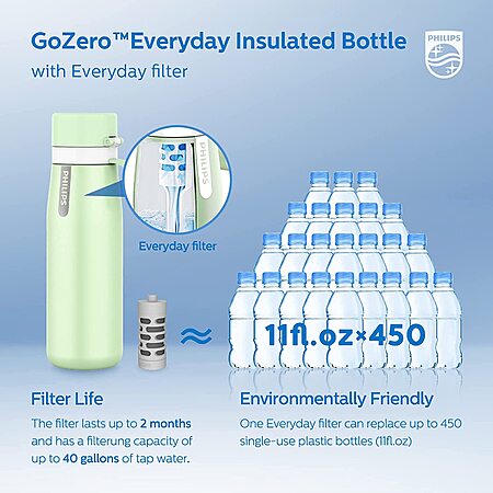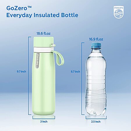 18.6-Oz Philips GoZero Everyday Insulated Stainless Steel Water Bottle w/ Filter: Green $18.60 or Blue $18.63 + Free Shipping w/ Prime or Orders $25