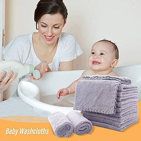 Model: Ultra Soft 24 Pack Baby Washcloths - 10x10 Inches - Coral Fleece Extra Absorbent Wash Clothes for Babies, Infants and Toddlers - Sensitive Skin and Newborn - Ideal Baby