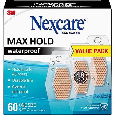 60-Count Nexcare Max Hold Waterproof Bandages Value Pack (One Size)