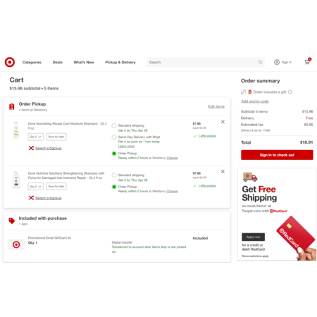 Target Dove Shampoo/Conditioner 25.4oz 4 bottles for $10.96 after GC PICKUP ONLY