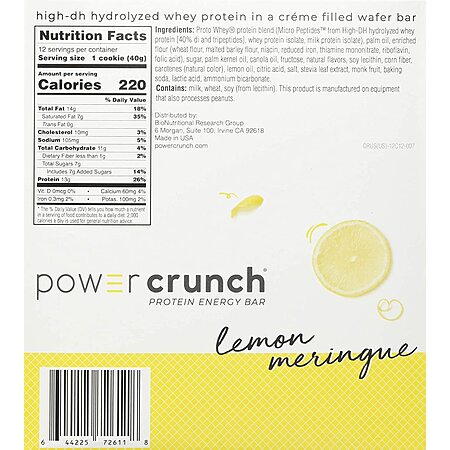 Model: Bionutritional Research Group Power Crunch Protein Energy Bar, Lemon Meringue, 12 Count (16.8oz) (480G)