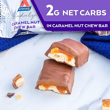Amazon has the 5-Pack 1.2-Oz Atkins Endulge Treat Bars (Caramel Nut Chew) for $3.23 when you 'clip' the 15% savings coupon and check out with Subscribe & Save. Shipping is free with Prime or $25+ orders.