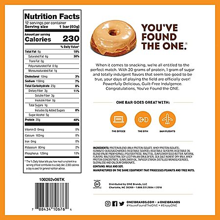 Model: One Protein Bar, Maple Glazed Doughnut Flavored - 12 pack, 2.12 oz bars