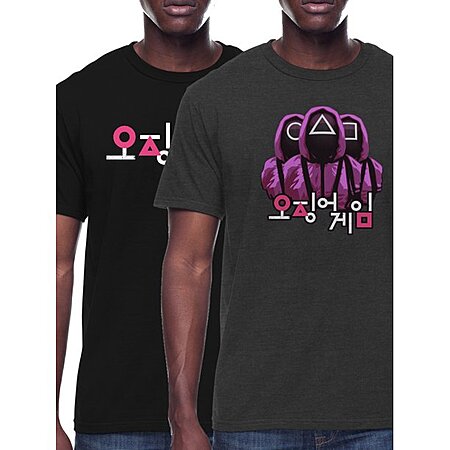 2-Pack Men's Graphic T-Shirts: Squid Game Guards and Logo