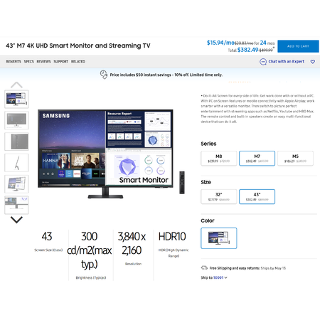 Samsung Education/Employment Discount Program Members: 43" Samsung M7 4K UHD Smart Monitor and Streaming TV (LS43AM700) for