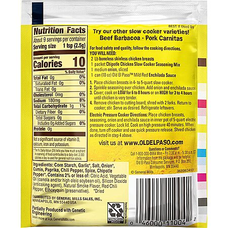 Old El Paso Slow Cooker Seasoning, Chipotle Chicken, 0.85 ounces (Pack of 32).
