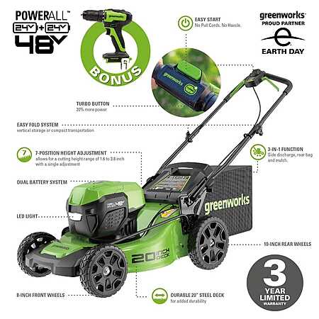 Greenworks 48V 20" Lawn Mower w/ (2) 4.0AH Batteries + Dual Port Charger + 24V Drill/Driver $199.99