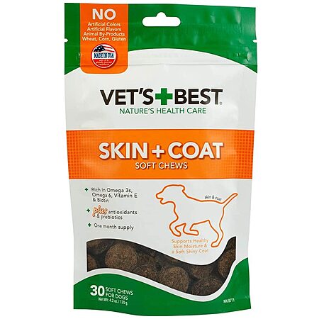 Vet's Best Skin & Coat Soft Chew Dog Supplements | Formulated with Vitamin E & Biotin To Maintain Dogs Healthy Skin & Coat | 30 Day Supply