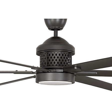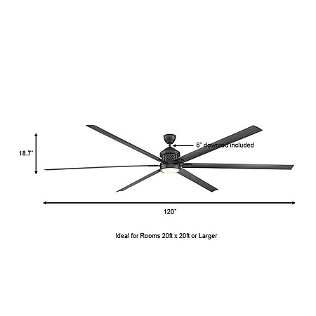 The Home Decorators Collection Royalty 120 in. LED Indoor/Outdoor Natural Iron Ceiling Fan is a very large fan and will cool down any industrial space with its 15,000 CFMs. With its DC Motor you will get more CFMs, speeds, reverse on the remote as well as energy savings. The included remote control operates the 9-speeds, light dimming, timer, and random breeze functions. The lifetime motor warranty offers peace of mind for reliable air circulation. DC motor fans are 70% more energy efficient than AC motor fans (when comparing efficiency (CFM/W) of DC vs AC motors in published FTC Energy Guides for ceiling fans).