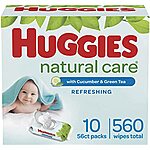 560-Count Huggies Natural Care Refreshing Baby Wipes (Cucumber/Green Tea) $11.47 w/ S&S + Free Shipping w/ Prime or on orders over $25