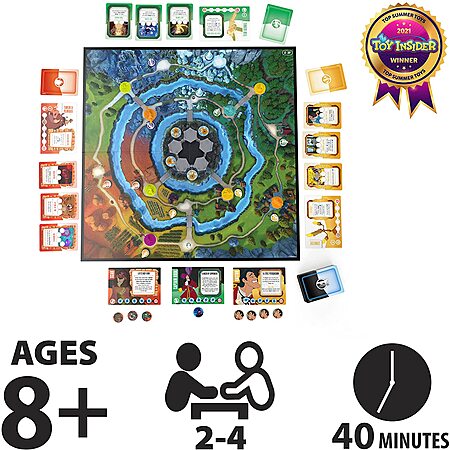 If you are looking for a good entry point to cooperative games (meaning that everyone plays together or the same team against the board game) for 8 and over (including adults) at a great value, check out Forbidden Island which can usually be found for less than $20.