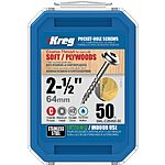 Kreg 305 Stainless-Steel Pocket-Hole Screws, 2-1/2" #10 Coarse-Thread, Washer-Head (50 Count) SML-C250S5-50 $5.97
