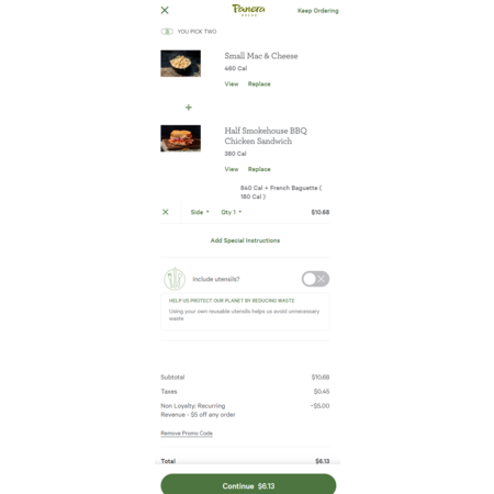 Fine PrintMust be a MyPanera Loyalty Program member to redeem offer. If you are not already a member, registration is free. From 4/28-5/28/2022, at participating U.S. Panera Bread bakery-cafes, receive up to $5.00 off any online order. Online purchases only. Must "click to redeem" to access discount. Maximum discount is $5.00. Gift card purchases excluded. Not valid on catering orders or orders placed on third party delivery sites. Discount automatically applied at check-out. Taxes may apply. Not valid with any other coupon or offer. Promotion may expire without notice due to err 0 r (trying to not set off da's), fraud or other unforeseen circumstances. While supplies last. Other restrictions may apply. |