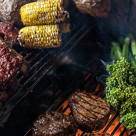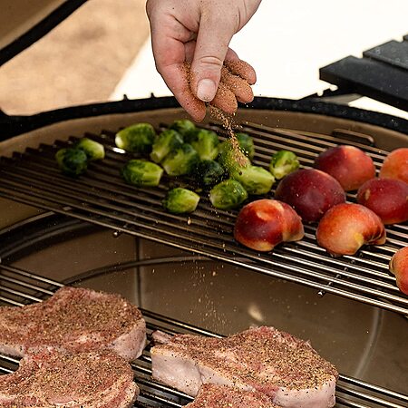 • Multi-Position Stainless Steel Rack w/ 2x 304 Stainless Steel Halved Grill Rates + 2x Ceramic Halved Heat Deflectors