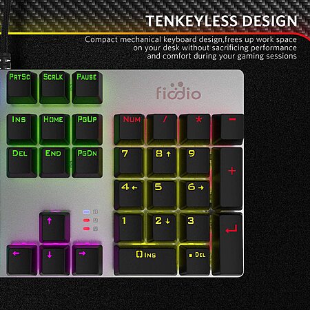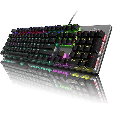 Fiodio Rainbow Backlit Wired Mechanical Gaming Keyboard w/ Blue Switches