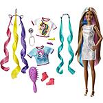 Barbie Fantasy Hair Doll, Brunette, with 2 Decorated Crowns, 2 Tops & Accessories for Mermaid and Unicorn Looks, Plus Hairstyling Pieces, for Kids 3 to 7 Years Old