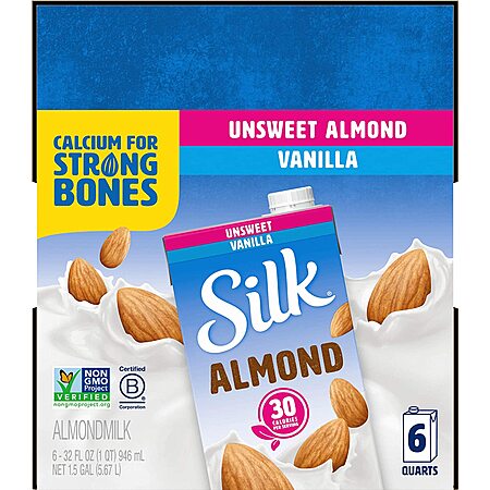 Amazon has 6-Pack of 32-Oz Silk Almond Milk (Unsweetened Vanilla) for $9.69 - 5% when you check out via Subscribe & Save = $9.21. Shipping is free w/ Prime or on $25+.