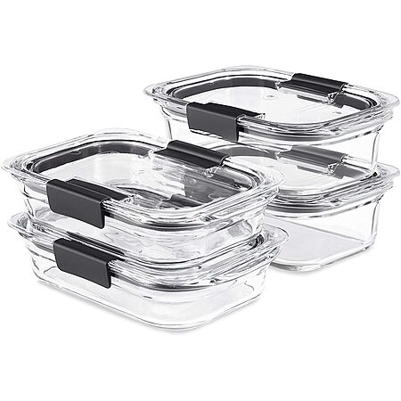 • Rubbermaid Brilliance Glass Storage 3.2-Cup Food Containers with Lids, 4-Pack (8 Pieces Total Medium, Clear)