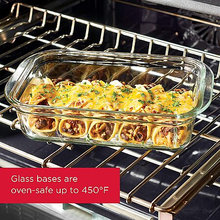 • These Rubbermaid Brilliance Glass Food Storage Containers have glass bases and crystal-clear StainShield lids. These versatile, durable, and leak-proof containers are perfect for storage and serving + the bases are oven-safe up to 450F.