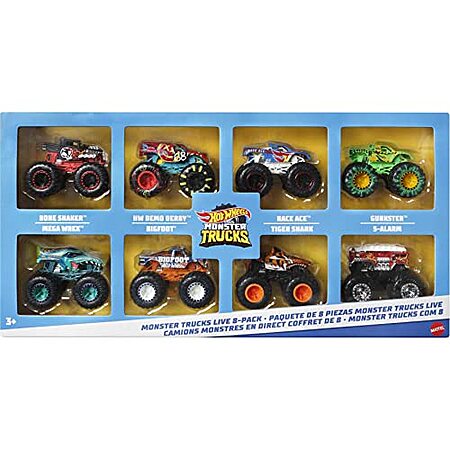 Model: Hot Wheels Monster Trucks Live 8-Pack, Multipack of 1:64 Scale Toy Monster Trucks, Characters from The Live Show, Smashing & Crashing Trucks, Gift for Kids 3 Years Old & Up