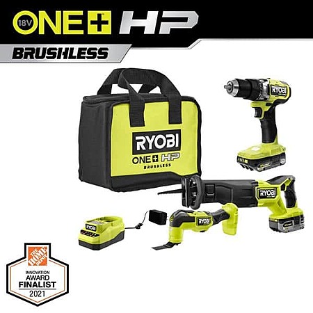 RYOBI ONE+ 18V Lithium-Ion Cordless 3-Tool Combo Kit w/ 1.5 Ah Battery & Charger