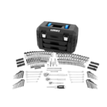 HART continues to expand our Mechanics sets—and the 270 piece set definitely takes it to the next level. You’ll find an extensive range of standard as well as deep well sockets in both metric and SAE for general automotive work. The 90-tooth ratchets allow up to 20% more access in tight spaces while the reverse switch lever lets you change working direction with just one hand. Having the option of 1/4”, 3/8” and 1/2” drive ratchets makes large and small tasks easy to work through. The set includes tools and adaptors, ¼-inch drive 6 point sockets (standard and deep well), 3/8-inch drive 6 point sockets (standard and deep well), ½-inch 12 point sockets and screwdriver. For more specialty applications, included are star bits and variety of hex bit sockets. In addition, the chrome finish provides rust resistance for added durability and large size markings for quick and easy identification. The set comes in a durable case with metal latches and barrel hinges, plus additional storage space for maximum versatility.