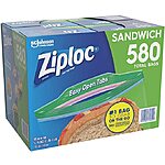 580-Count Ziploc Sandwich Bags w/ Easy Open Tabs