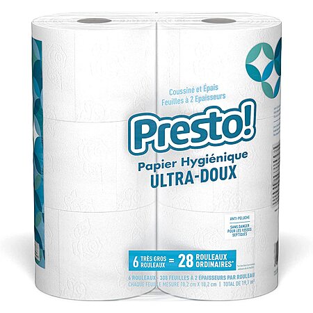 Amazon Brand - Presto! 308-Sheet Mega Roll Toilet Paper, Ultra-Soft, 6 Count (Pack of 4) AC w/S&S $15.23 YMMV
