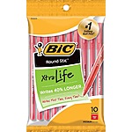 10-Count BIC Round Stic Xtra Life Medium Point Ballpoint Pens (Various)